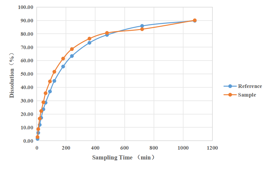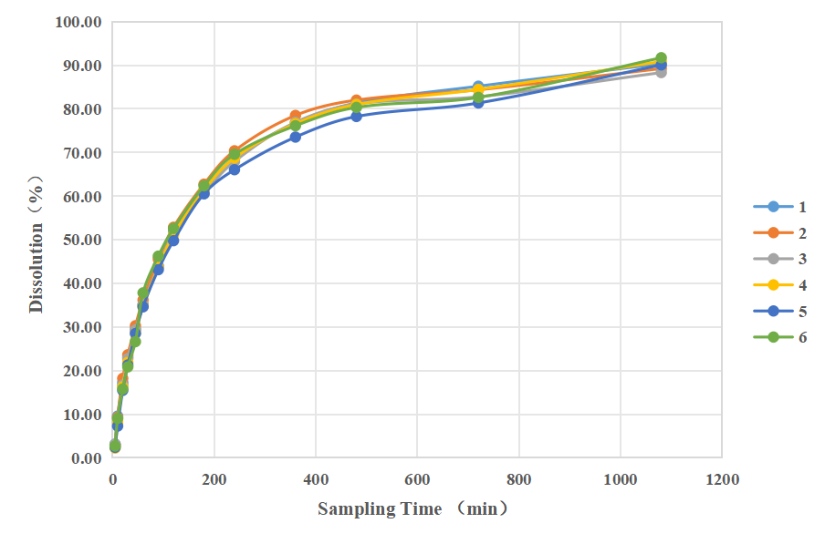 结论:RT700流通池溶出系统在缓释片的体外溶出测试中,具有良好的重复性和区分度。