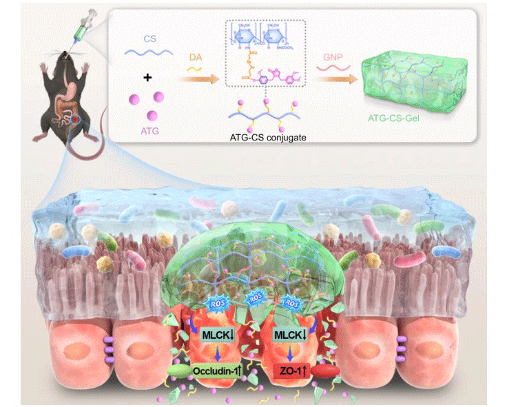 一种双硒键桥连的牛蒡苷元(ATG)-壳聚糖(CS)共聚物,并进一步制成ROS敏感水凝胶(ATG-CS-Gel)。