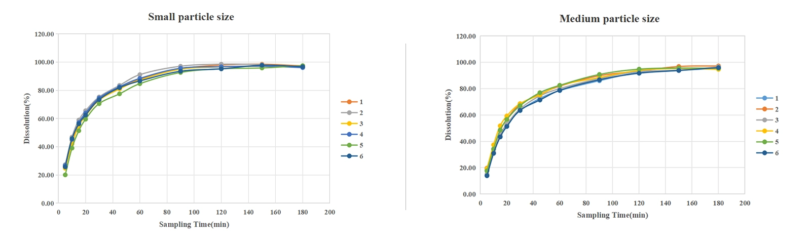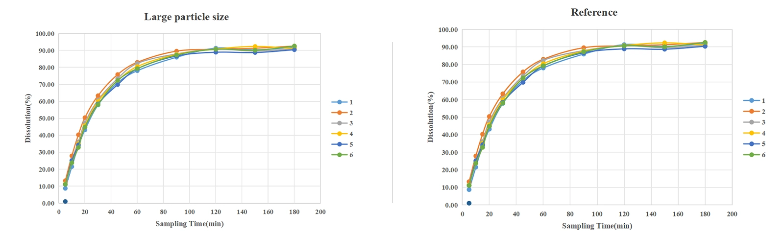 ②鉴别力:该方法能够清晰体现关键质量属性(粒径)变化对该眼用悬浊液体外释放行为的影响,有助于区分仿制药与参比制剂。